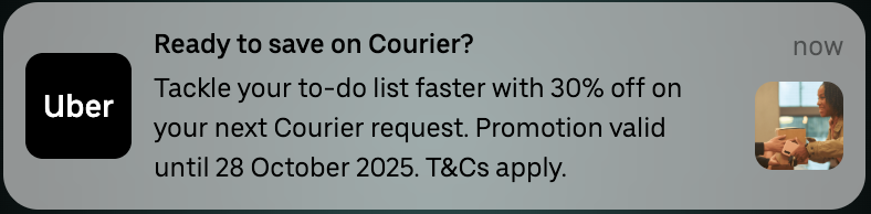 CONTEXT: Uber Courier is a convenience-led offering, but requires a behavioural shift for users to move from awareness to first-time usage. This created an opportunity to drive adoption among users who already demonstrate convenience-driven purchase behaviour on the platform.